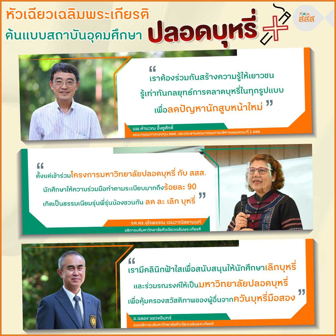 สสส. ปลื้ม โครงการ “มหาวิทยาลัยปลอดบุหรี่ 100%” ขยายผลสำเร็จ 164 สถาบันอุดมศึกษา อ่านต่อที่...ssss.network/f2aur สามารถติดตามข้อมูลที่เกี่ยวข้องได้ที่ thaihealth.or.th #Thaihealth #สสส #ชีวิตวิถีใหม่ #ชีวิตดีเริ่มที่เรา #มหาวิทยาลัยปลอดบุหรี่ #บุหรี่