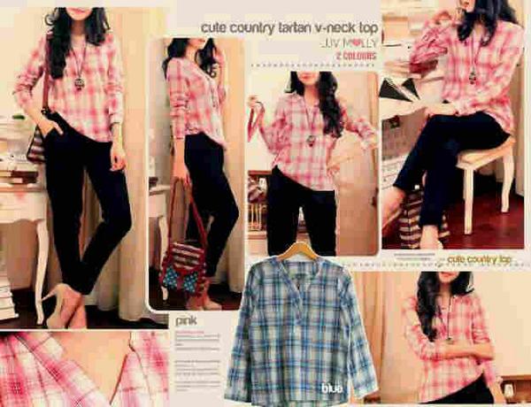 cute country tartan v-neck too @80k bahan katun import fit L • wanna ? PIN:2AEF5E7B