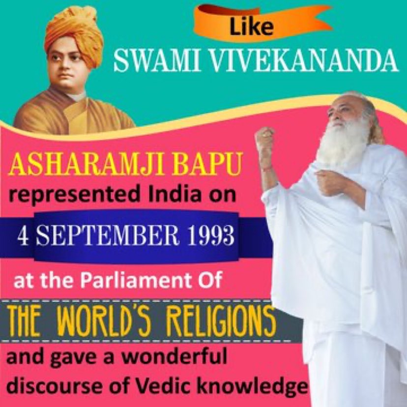 Swami Vivekananda के बाद Sant Shri Asharamji Bapu ने World Religions Parliament मे भारत का प्रतिनिधित्व किया। धर्मान्तरण करानेवाली ताकतो ने विवेकानंदजी का भी बहुत कुप्रचार किया था, जैसे की आज Bapuji का करवा रहे है l इस षडयंत्र को विफल बनाना हम सबका कर्तव्य है l #ProudToBeHindu