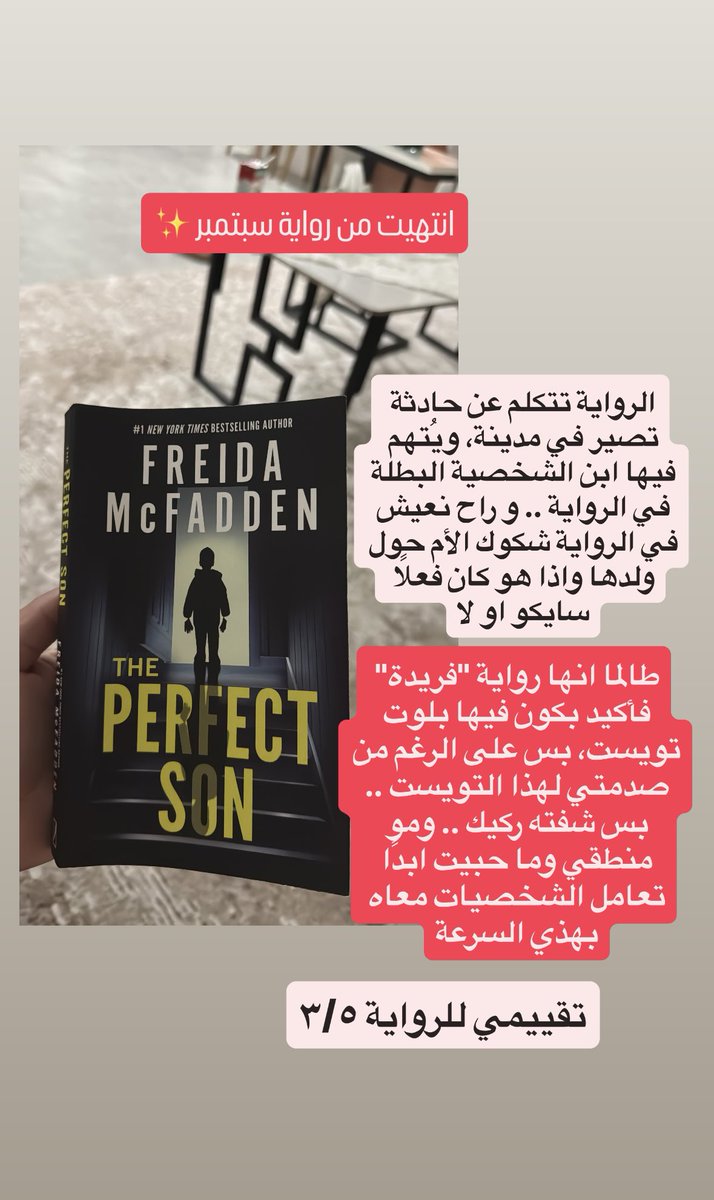 تقييمي لرواية الكاتبة "فريدة مكفيدن" "الولد المثالي" #theperfectson