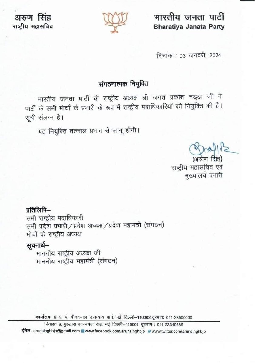 भाजपा के राष्ट्रीय अध्यक्ष मान. श्री जेपी नड्डा जी ने संगठन के विभिन्न पदों पर राष्ट्रीय पदाधिकारीयो की नियुक्ति की। सभी को हार्दिक बधाई हो...