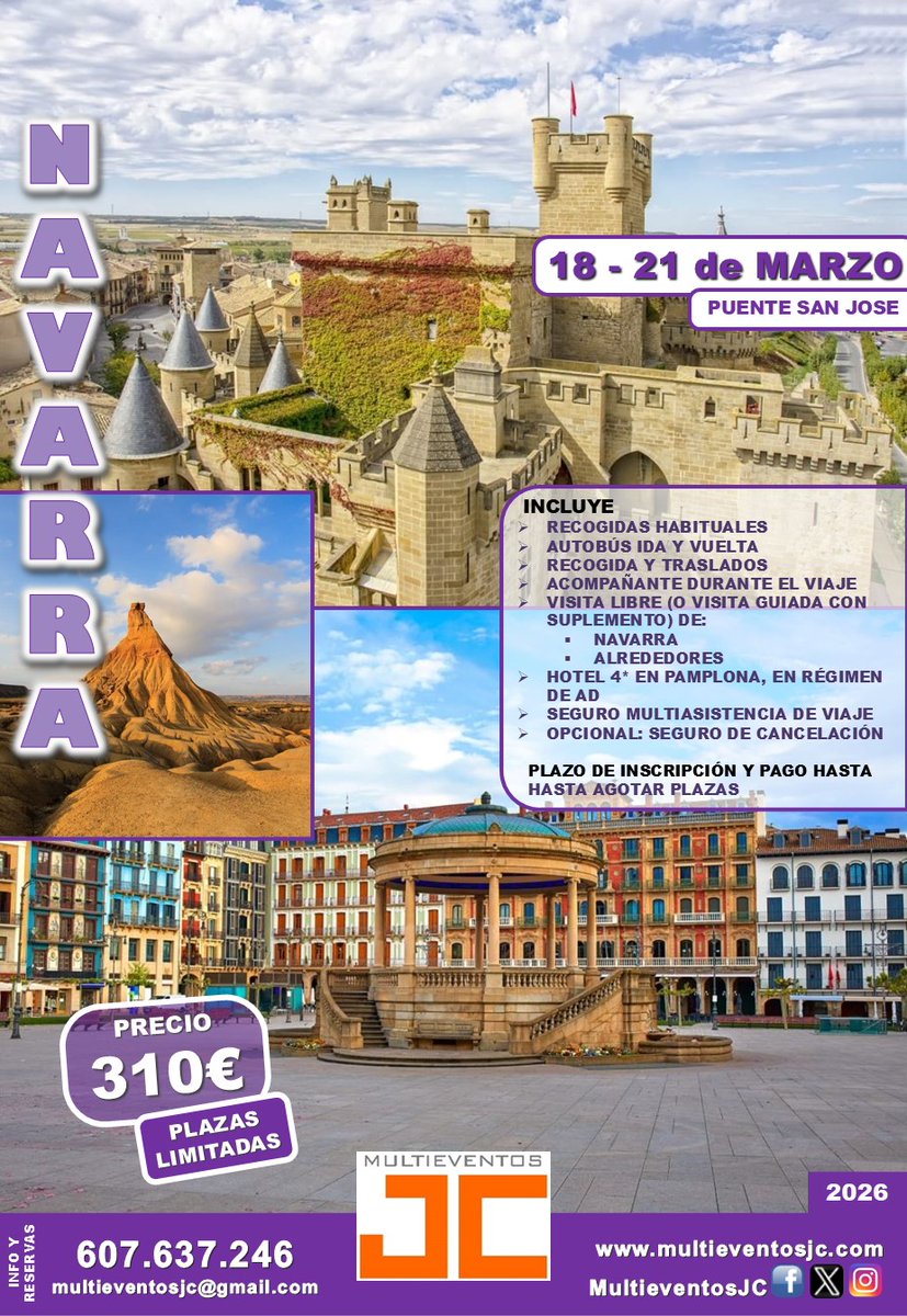 Nuevo #viaje en #Marzo - #Navarra - Plazas limitadas; opcional seguro de cancelación; Recogidas habituales 🟠 #MJC, creando buenos momentos para recordar #Cultura #Ocio #Turismo #FelizViernes #FelizFinde #PuenteSanJose