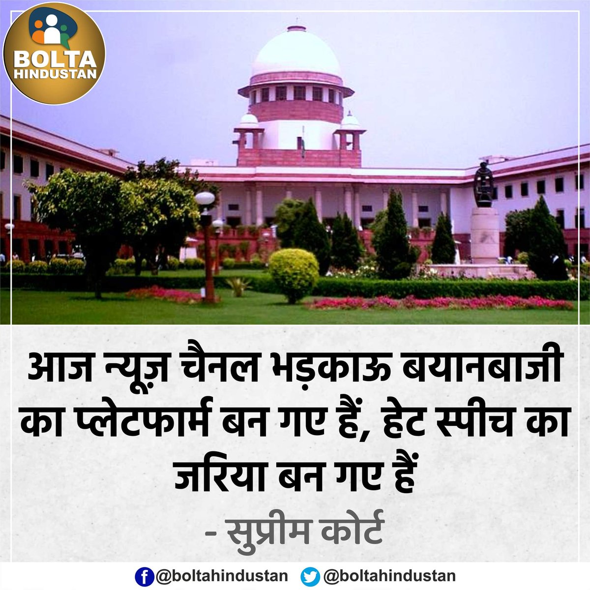 सुप्रीम कोर्ट ने कहा है कि न्यूज़ चैनल हेट स्पीच के प्लेटफॉर्म बन गए हैं। कोर्ट ने ये भी कहा है कि किसी प्रोग्राम में भड़काऊ बातें न होने की जिम्मेदारी ऐंकर की है। लेकिन इन एंकरों को शर्म कब आएगी? ये इस तरह के प्रोग्राम बनाना कब बंद करेंगे?