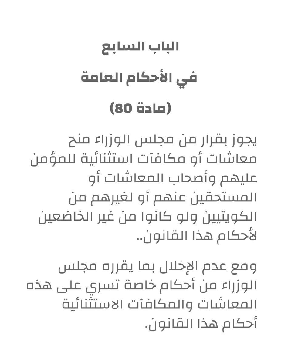 اجازت المادة 80 من قانون 61 لسنة 1976 لمجلس الوزراء ودون الحاجة لموافقة مجلس الامة صلاحيات منها منح #مكافأة_ال_3000_دينار للمتقاعدين. والتنصل من هذا التخويل القانونى للابتزاز السياسي والمقايضة لفرض جلسة غير دستورية استمرار لمسلسل الرئيسين فى امتهان وتمييع الدستور.