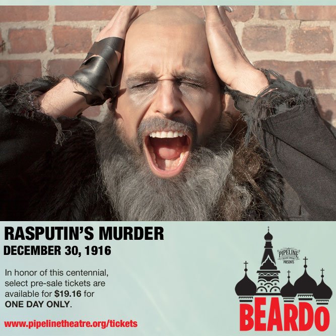 With no #Rasputin there'd be no #beardoplay. Commemorate w/ tix at pipelinetheatre.org/tickets
