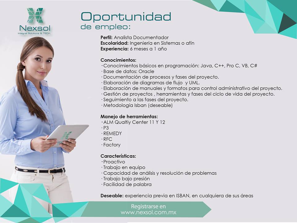 Tenemos 1 #vacante para #AnalistaDocumentador Entra a nexsol.com y sube tu currículum ¡Postúlate ya!