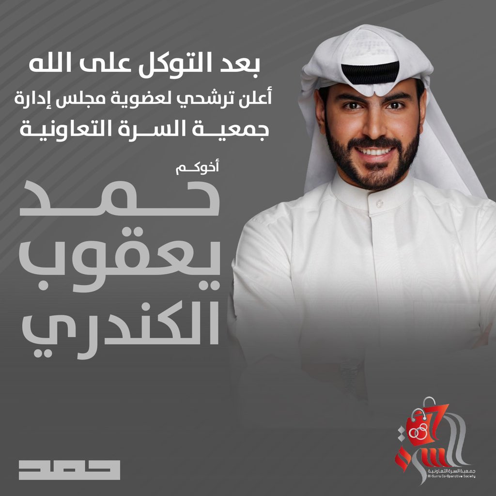 بعد التوكل على الله .. أعلن ترشحي لانتخابات مجلس إدارة جمعية السرة التعاونية راجيًا من الله التوفيق والسداد . اخوكم / حمد يعقوب الكندري #جمعية_السرة_التعاونية