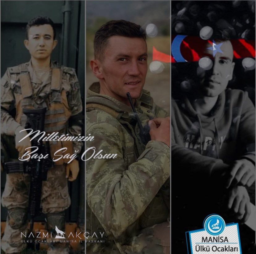 Pençe-Kilit Operasyon Bölgesi'nde şehit düşen kahraman askerlerimiz P. Teğmen Bekir Can Kerek P. Uzm Çvş. Kubilay Çon P. Uzm .Çvş. Furkan Gök 'e Allah'tan rahmet, kederli ailelerine ve aziz milletimize başsağlığı ve sabır diliyorum. Milletimizin başı sağ olsun.🇹🇷