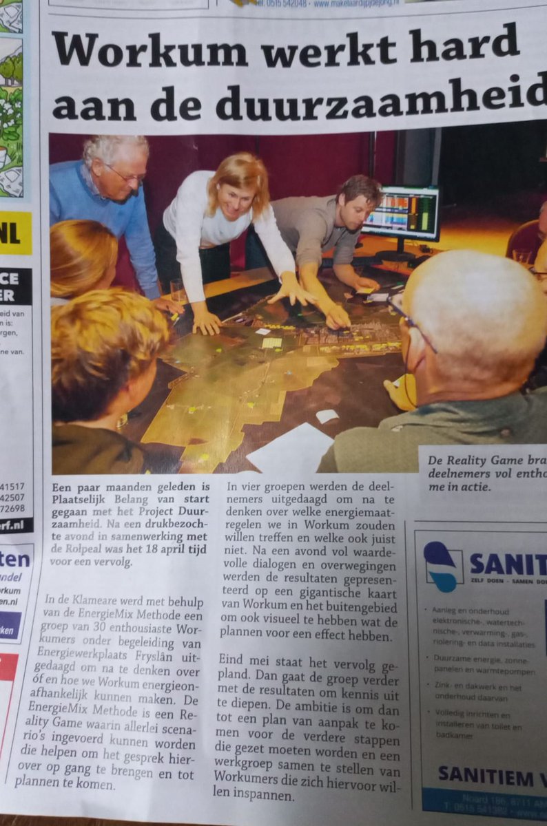 Leuk artikel over de Energiemix Methode avond in de Workumer krant, de Friso. A.s zaterdag organiseren we tijdens het Beraad in Raerd een workshop 'Een energieonafhankelijk dorp: mixen en plakken' @Doarpswurk @PBWorkum