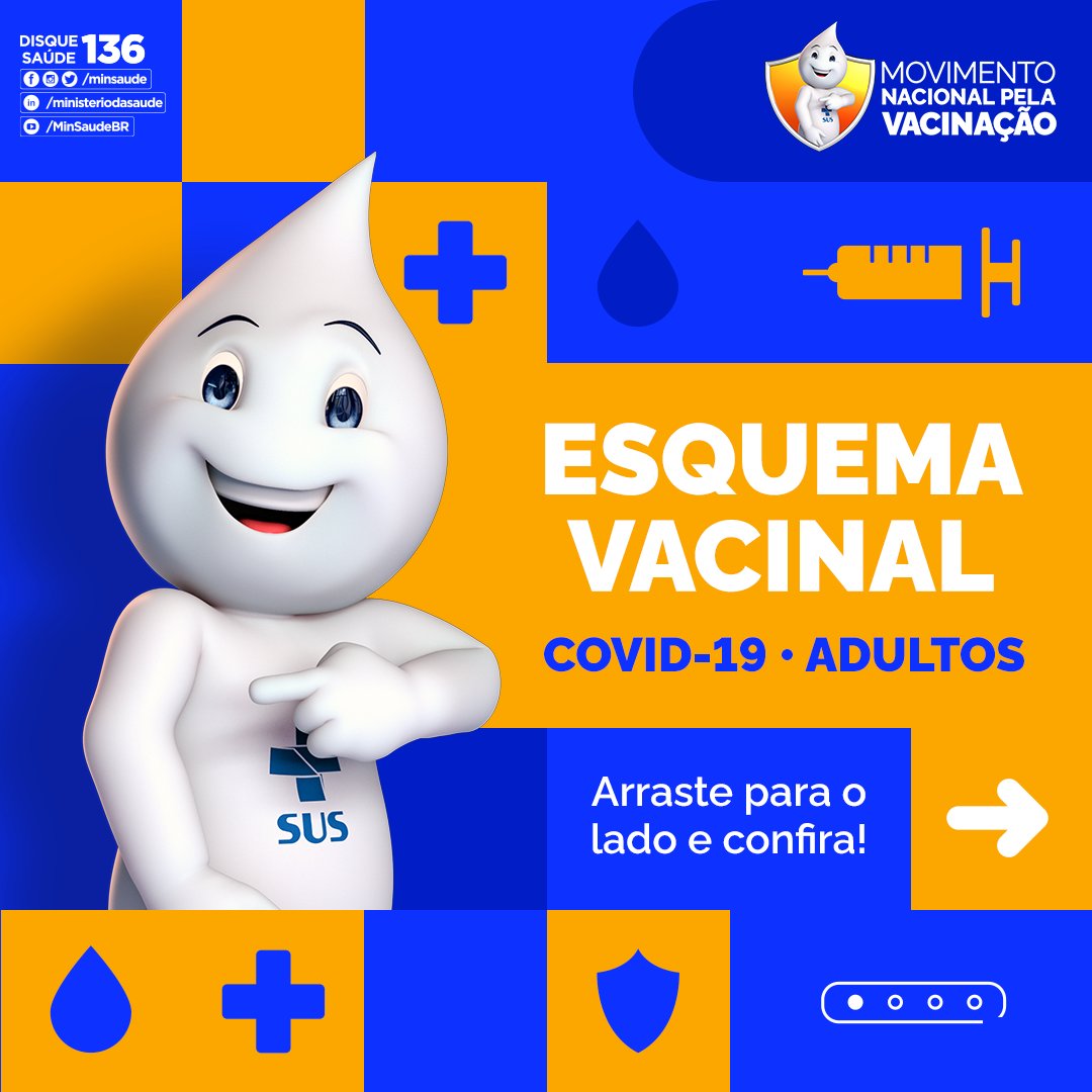 #VacinaéVida#VacinaéPraTodos Temos vacinas contra a Covid-19 disponíveis para todas as idades. Informe-se, fique atento ao calendário de vacinas da sua região e complete o seu esquema vacinal.