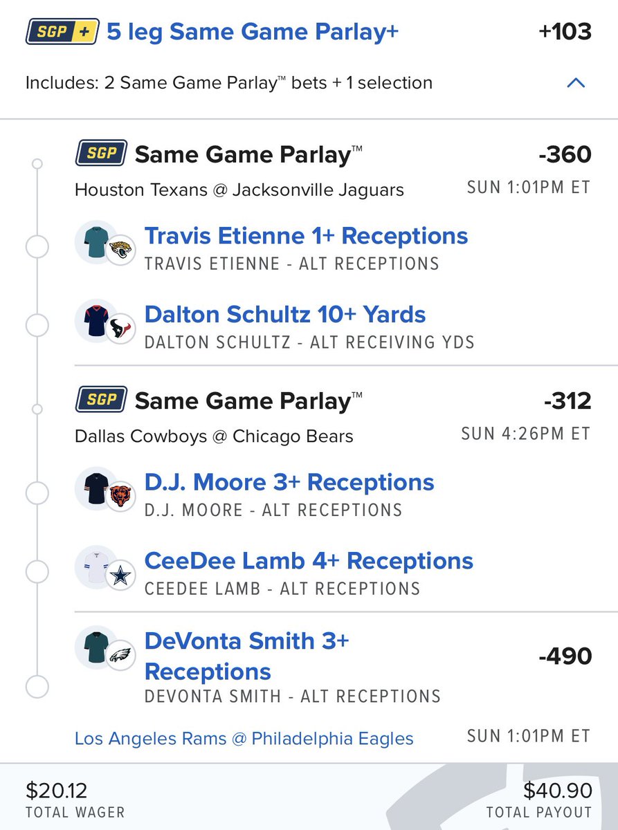 Jags win easy tomorrow. McCaffrey doesn't find the endzone. 3.5X. Don't @ me when this hits. Link: epick-web.prod.epickfantasy.com/lineup/AgE87rt…
