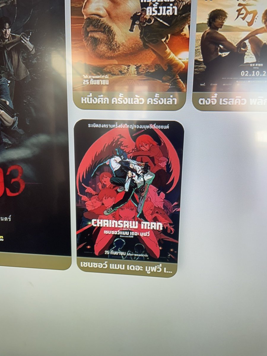 🐯と映画📽️デート🥰 タイ語も英語もからっきしだったからチェンソーマンやってて良かったが上映時間を30分過ぎても始まらず。🐯曰く「普通は30分くらい広告があってから始まる」との事で🐯がスタッフに言いに行ったら広告すっ飛ばして始まった。さすがAmazing Thailand🤣