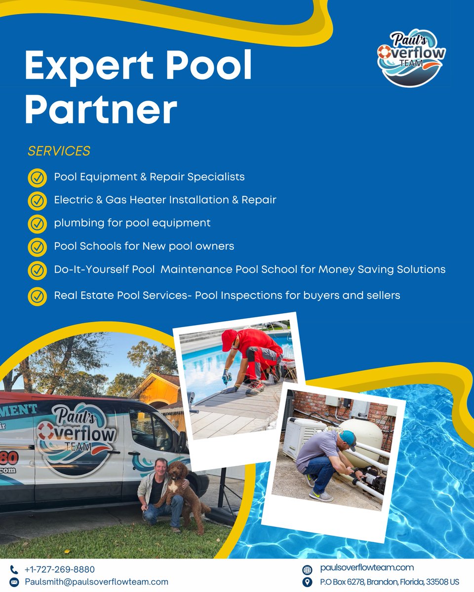 Comprehensive Pool Care, Repairs, and Installations—Effortless Solutions with Free Video Estimates, Real Estate Pool Inspections! paulsoverflowteam.com P.O Box 6278, Brandon, Florida Joined May 2025-