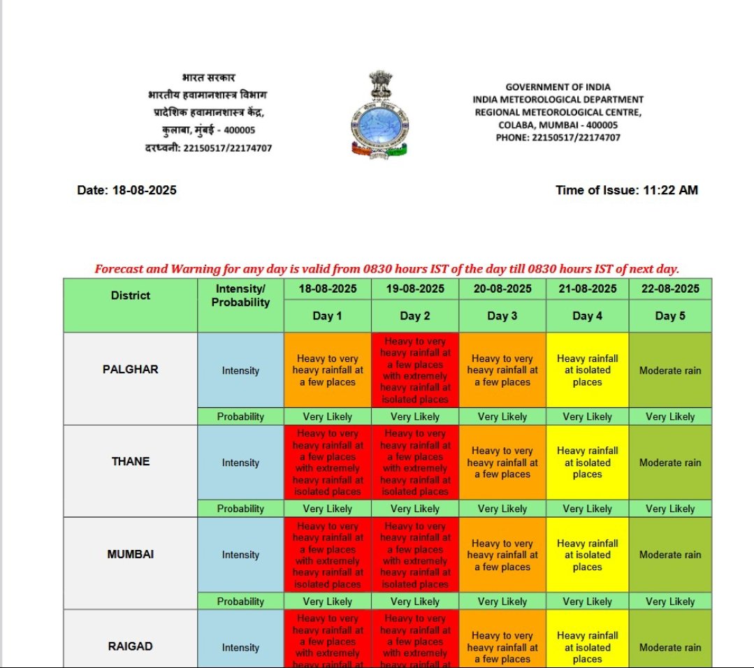 📢 Holiday declared for all schools and colleges in Mumbai tomorrow, 19th August 2025! 🌧 The India Meteorological Department has issued a Red Alert for extremely heavy rainfall in the Mumbai Metropolitan Region (Mumbai city and suburbs) on Tuesday, 19th August 2025.…
