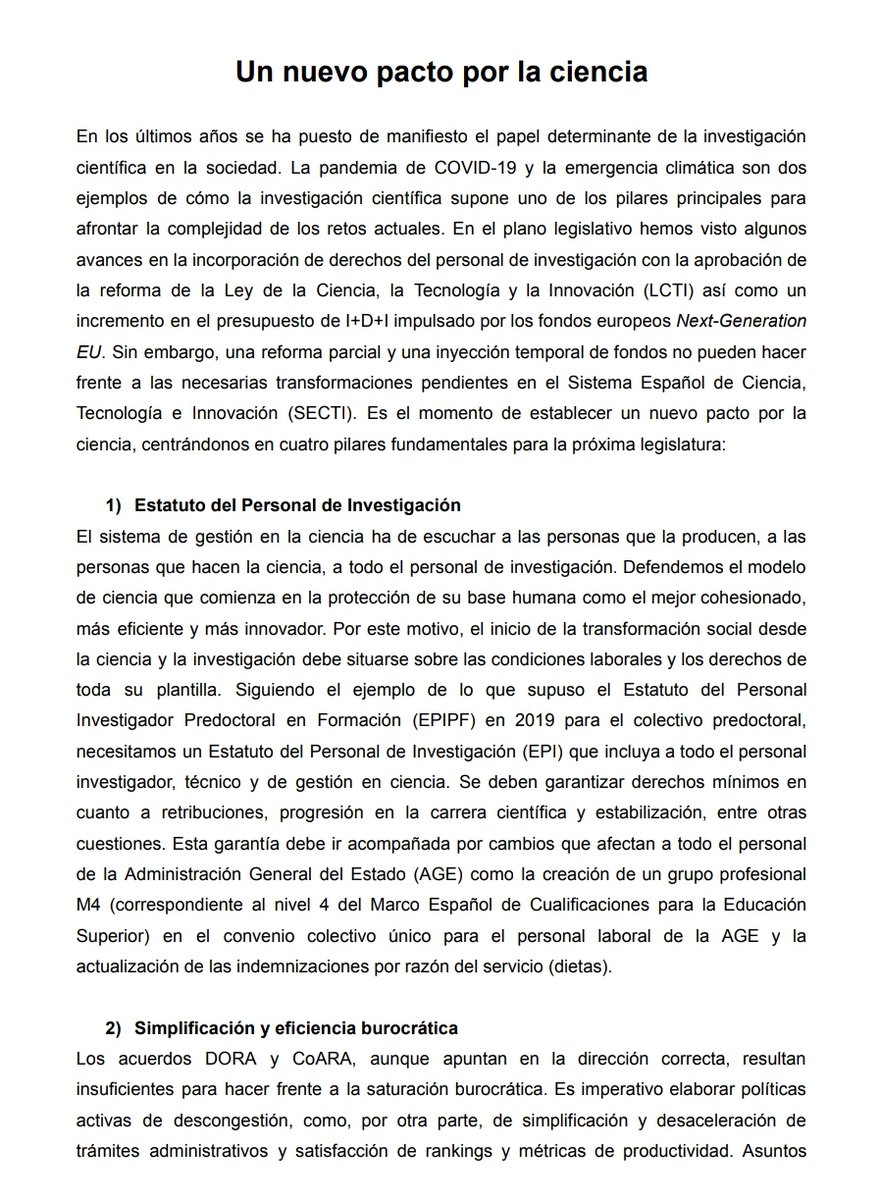 Aquí el manifiesto que se leyó ayer en distintas ciudades del Estado para pedir una reforma de la #LeyDeLaCiencia sensible a las necesidades del sector. Esperamos que no dejen pasar esta oportunidad. CC: @desdelamoncloa @CienciaGob @Haciendagob @territorialgob @UniversidadGob