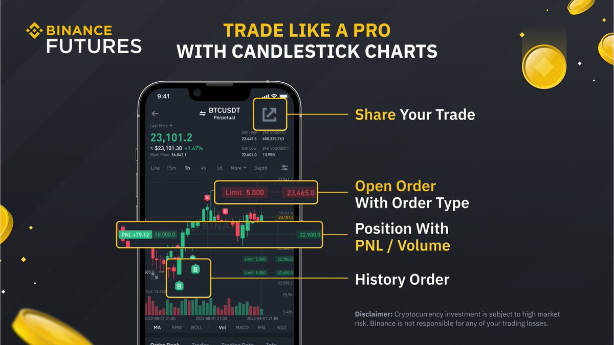 How Candlestick charts are useful: 1️⃣An intuitive way for traders to monitor their current position with PNL 2️⃣Gives a full picture of market movement and open orders 3️⃣Track history order 4️⃣Easily shareable 5️⃣Help traders analyse their previous trades with market movement