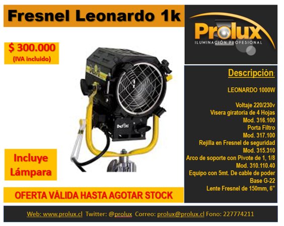 Fresnel Monet 1000 Watts | Prolux Ltda. prolux.cl/producto/fresn…