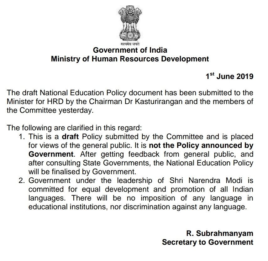 #HRD issues clarification regarding three language policy. #StopHindiImposition
