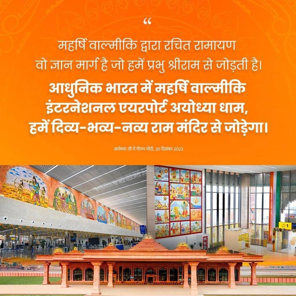 #नए_भारत_की_नई_अयोध्या त्रिकालदर्शी महर्षि वाल्मीकि जी के नाम पर अयोध्या धाम एयरपोर्ट का नाम, इस एयरपोर्ट में आने वाले हर यात्री को धन्य करेगा: PM Modi via NaMo App