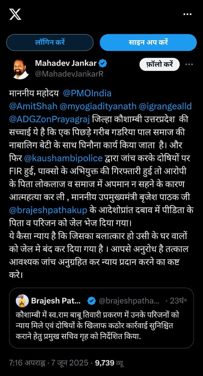 पाल समाज की बेटी और उसके परिवार को न्याय मिलना चाहिए। #बृजेश_पाठक_मुर्दाबाद #बृजेश_पाठक_मुर्दाबाद #बृजेश_पाठक_मुर्दाबाद