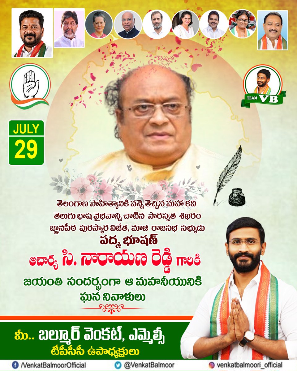 15K Followers 133 Following Former Minister & MLA -Telangana | Indian National Congress Working President: Telagana Pradesh Congress Committee Regional Coordinator: South India- AIPC