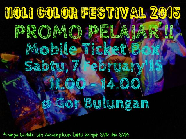 #HoliColorFestival2015 Mobile Tiket box ada di GOR bulungan buat promo pelajar IDR 150rb :) grab yours !! :)