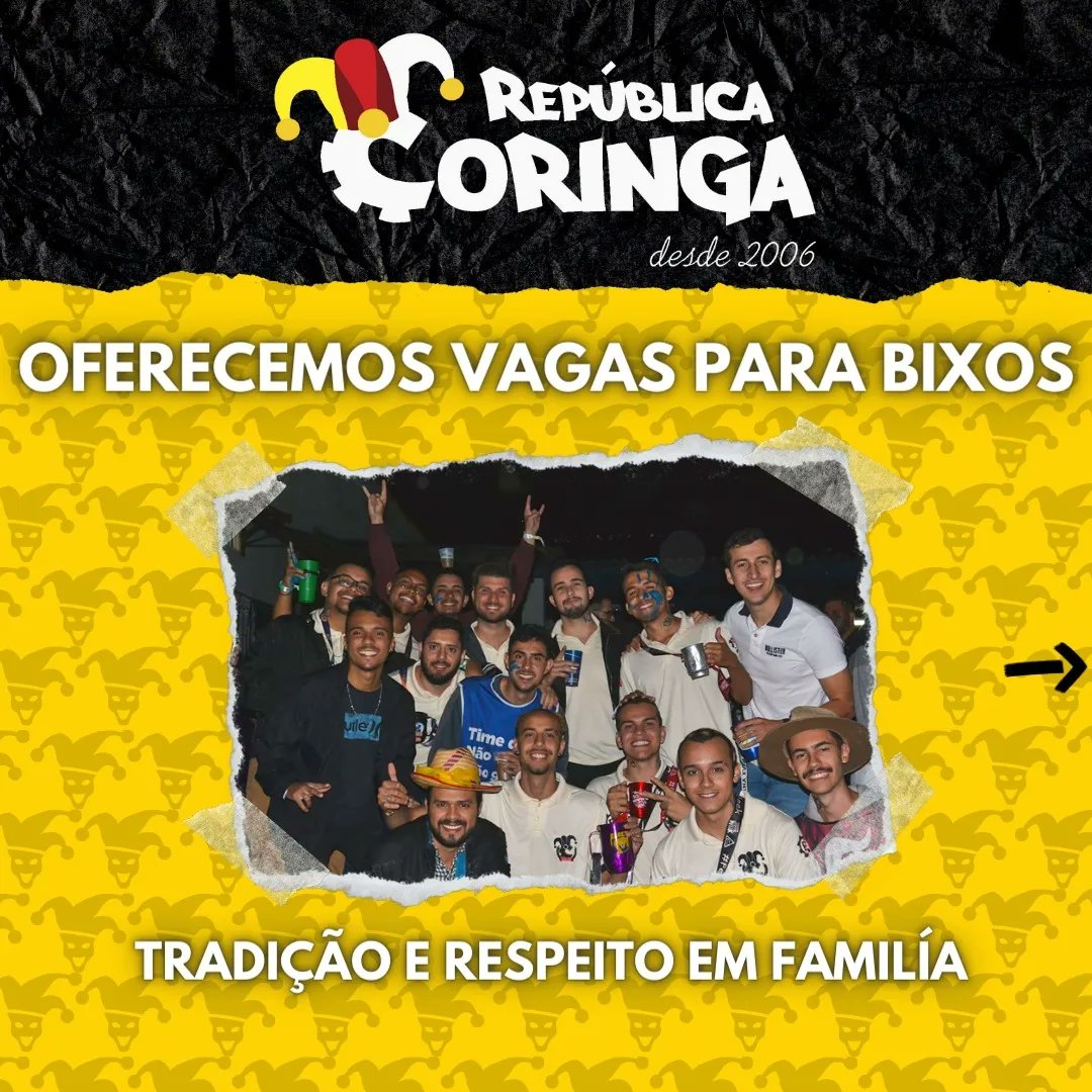 📆 Desde 2006 👨🏽🎓 Universidade de Itajubá - MG 🃏 9 irmãos instagram.com/republicacorin… República Coringa - Itajubá MG Joined June 2023-