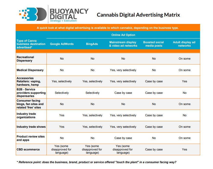 What digital #advertising options are available for different types of #cannabis brands? Do the sources support #YouthSafety? The list changes weekly! Talk to an age restricted media specialist today. buoyancydigital.com/cannabis/ @NCIAorg @cannabist @CyberStampede @CannabizMedia