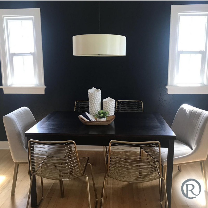 Have you ever shied away from choosing a dark wall colour? A dramatic wallpaper or dark paint colour can be balanced by adding furnishings, fixtures or trim that are light in colour. The contrast between the dark wall & the light accents create a stunning focal in the room. #yyc