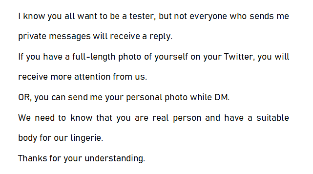 New Lingerie to be tried size range S-XL anybody wants to try?