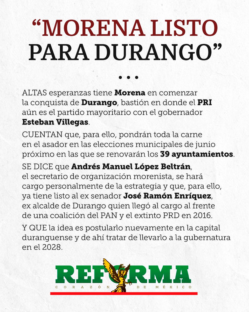 🔝¡𝐌𝐨𝐫𝐞𝐧𝐚 𝐞𝐬𝐭𝐚́ 𝐥𝐢𝐬𝐭𝐨 𝐩𝐚𝐫𝐚 𝐭𝐫𝐚𝐧𝐬𝐟𝐨𝐫𝐦𝐚𝐫 #𝐃𝐮𝐫𝐚𝐧𝐠𝐨! Con visión y compromiso, el mejor perfil para liderar este cambio es el Doctor @DrRamonEnriquez, un líder con experiencia y pasión por el bienestar de los duranguenses. En #Durango #EsConElDoc
