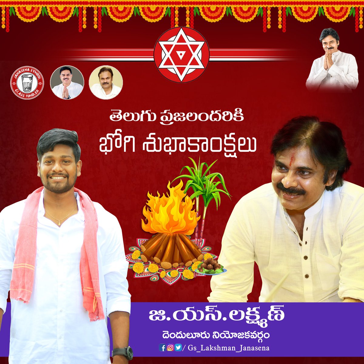 తెలుగు రాష్ట్రాల ప్రజలకు, @JanaSenaParty సోదర, సోదరీమణులందరికీ భోగి పండుగ శుభాకాంక్షలు. @PawanKalyan @JSPShatagniTeam @GsJanasena #HappyBhogi2021