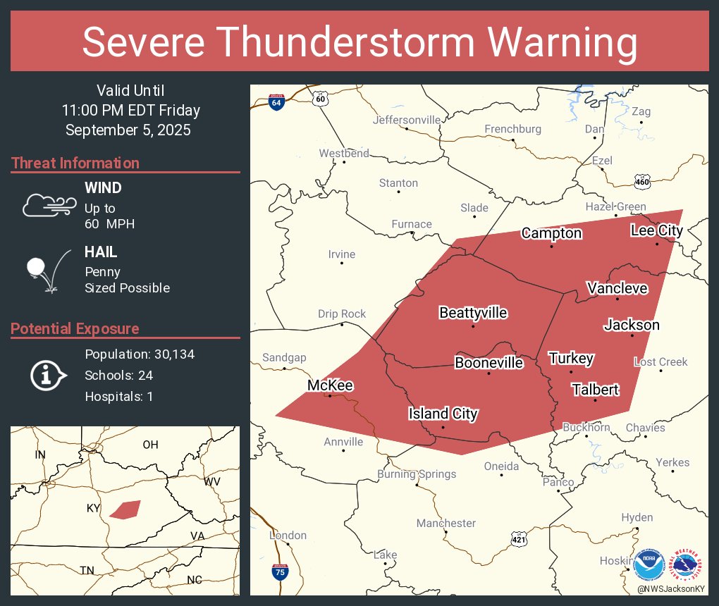 Severe Thunderstorm Warning including Jackson KY, Vancleve KY and Mountain Valley KY until 11:30 PM EDT