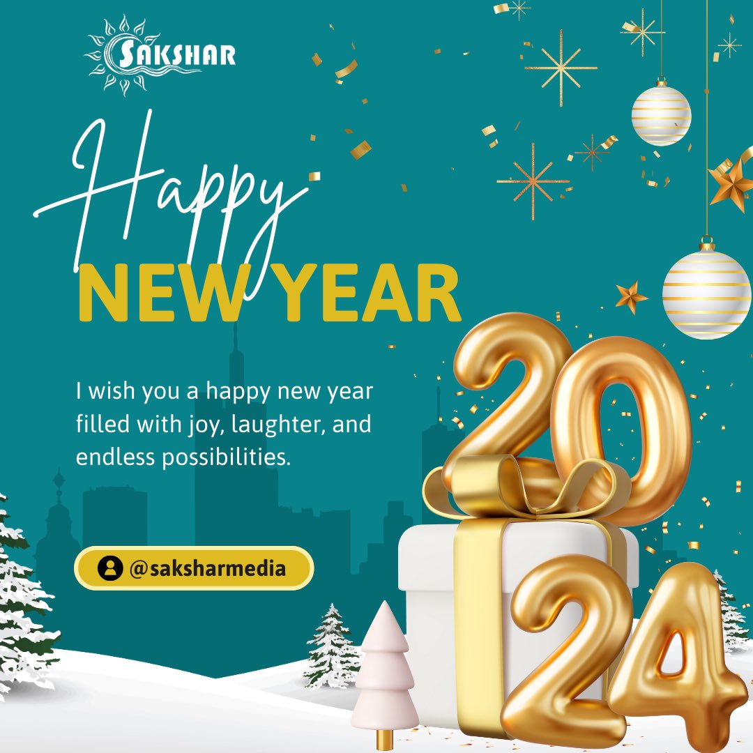 Cheers to new beginnings and joyful moments! Wishing you a Happy New Year from Sakshar Media as we bid farewell to 2023 and welcome 2024 with open hearts. 🎉✨ #NewYearJoy #SaksharMedia #happynewyear