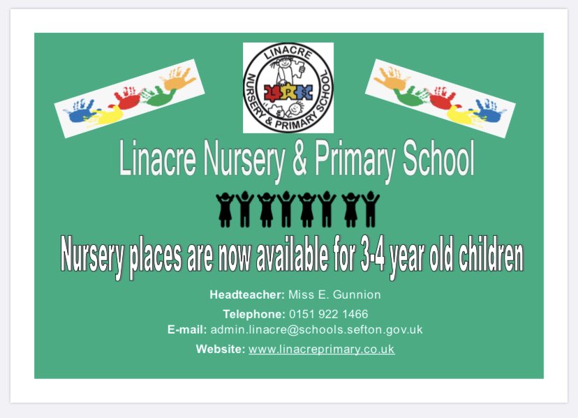 Please contact our school office for Nursery places. Please feel free to share with anyone else that requires a place. @Linacreprimary #gettingtogood