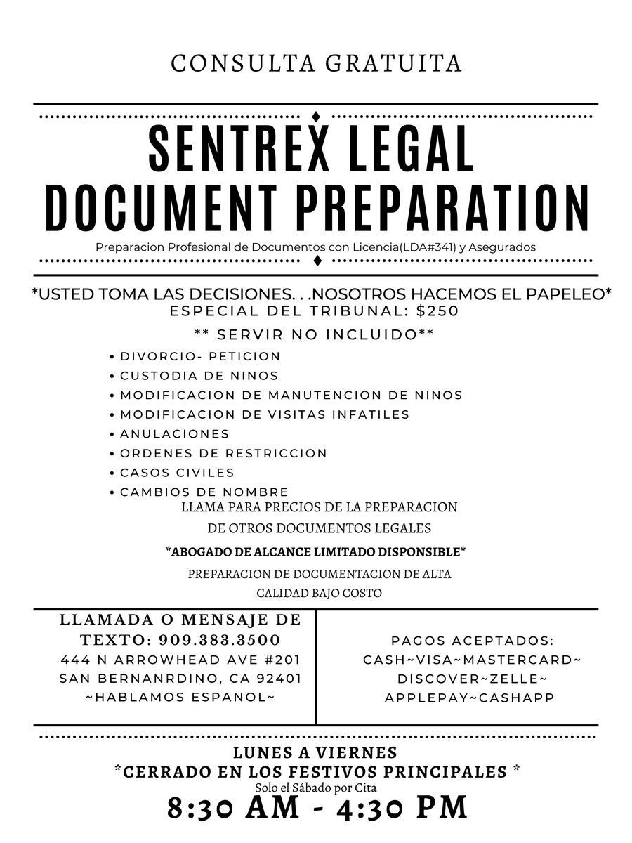 **You make the Decisions. . . We do the Paperwork** Call or Text for FREE CONSULTATION (909)383-3500 sentrexdocprep.com California, USA Joined June 2019-