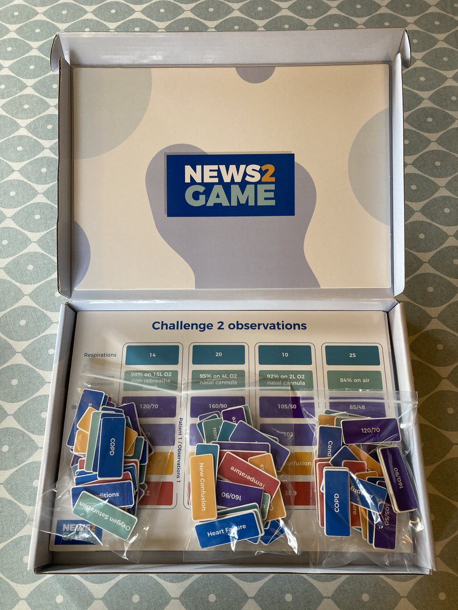 Look what's arrived. NEWS2 Game. Training tool to help staff/students improve understanding of assessment process and use of #NEWS2 for escalation. Up to 12 people for 60 minutes. #NHS #PatientSafety #DeterioratingPatient #COVID19 #Sepsis