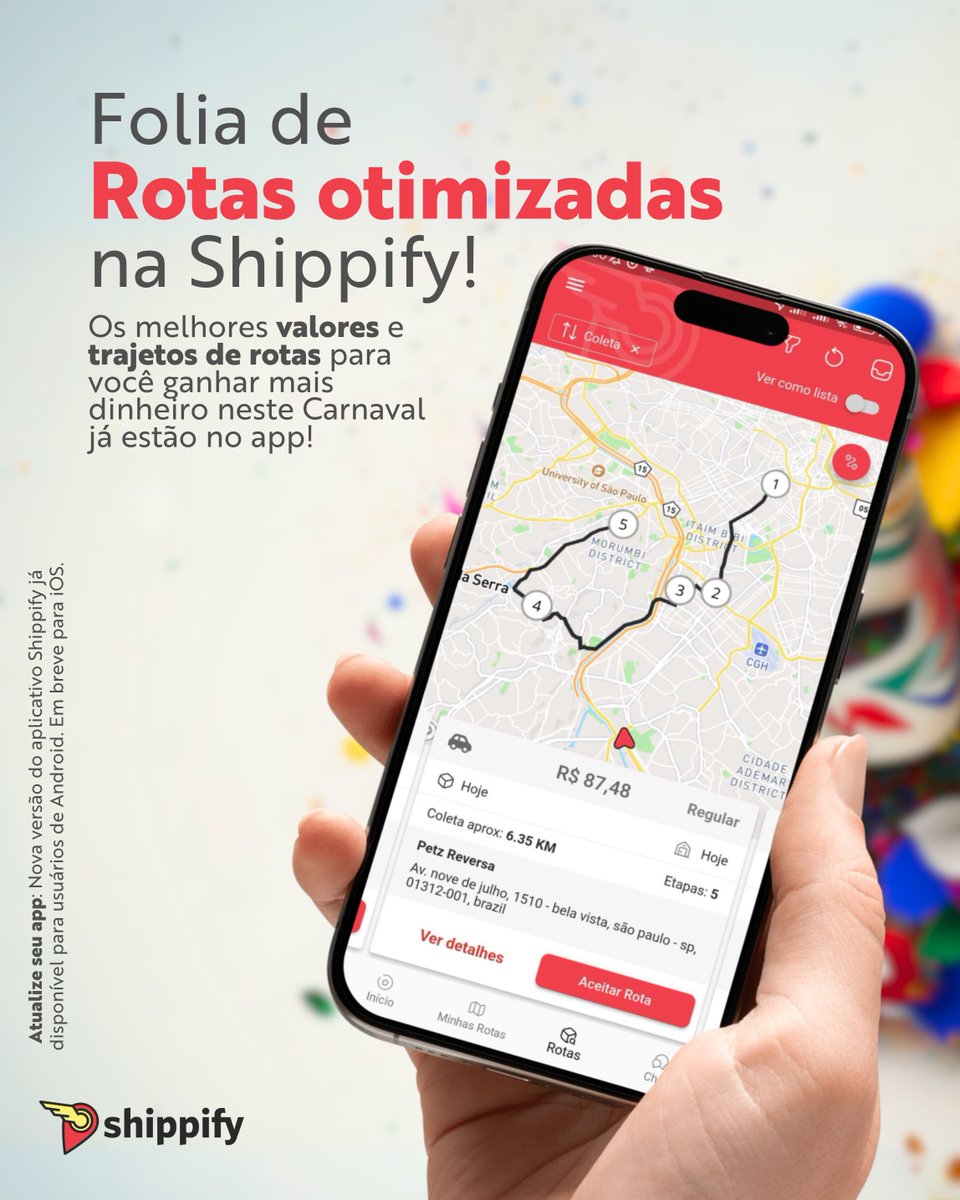 Alô, entregadores de todo o Brasil: Também é Carnaval na Shippify! 🎉 Otimizamos rotas para você não deixar de faturar uma grana neste Carnaval.