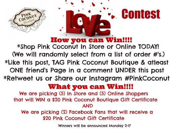 Retweet for your chance to WIN! #Pinkcoconut #ValentinesDay #shoppinkcoco