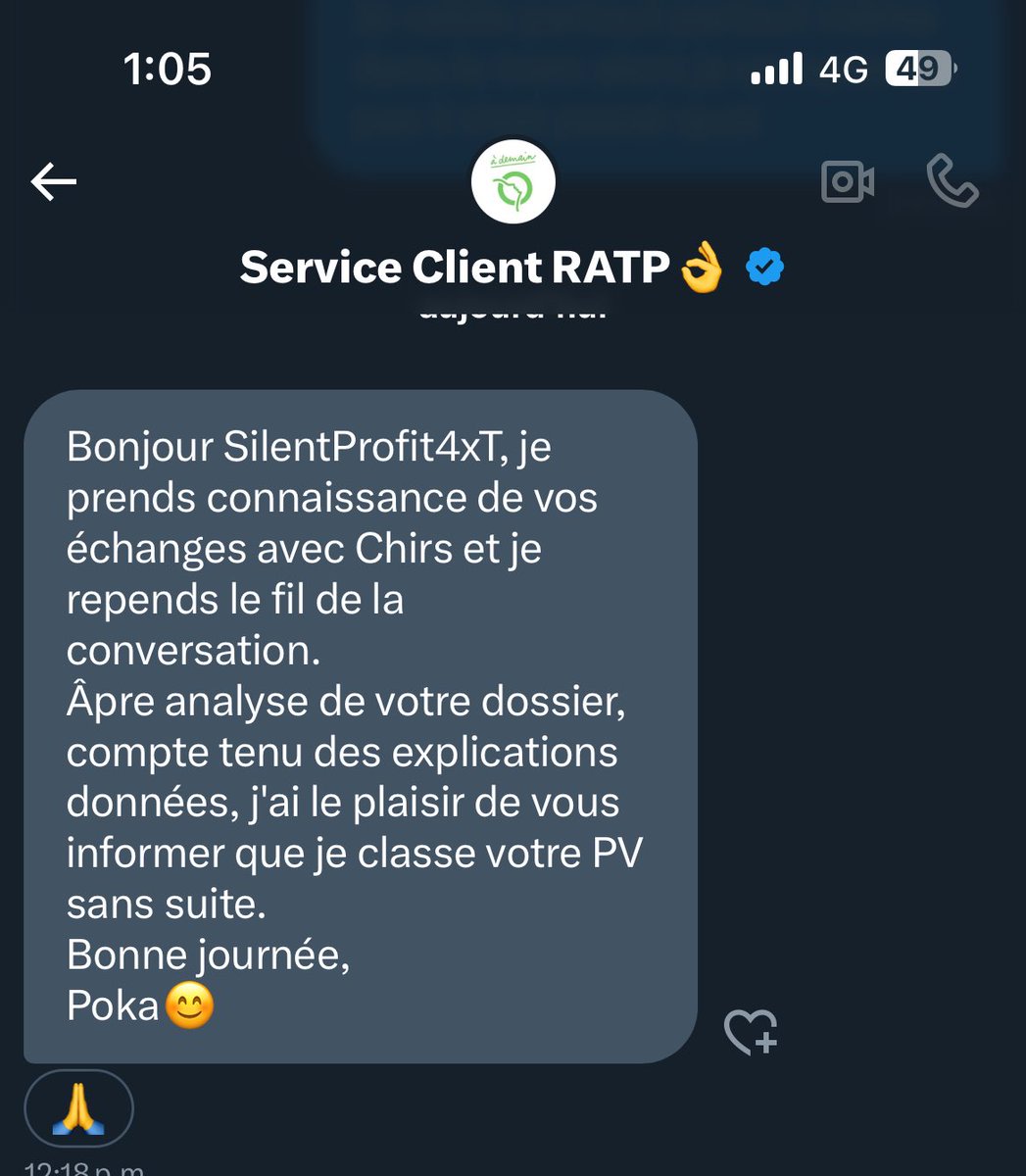 Coup de chance peut être mais merci à @RATPgroup @ClientsRATP d’avoir écouté ce que j’avais à dire! Super service, un peu lent mais sinon pas grave.