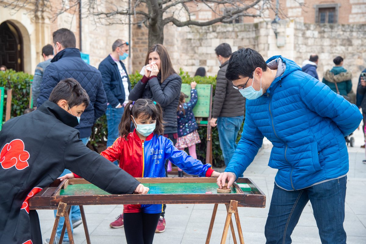 🎳🧩 Mucha diversión esta mañana en la Plaza de Cervantes, con los juegos desenchufados del #CarnavalAlcalá2022 Los niños y niñas se lo han pasado fenomenal, y los padres y abuelos han recordado viejos tiempos y grandes tardes de juego
