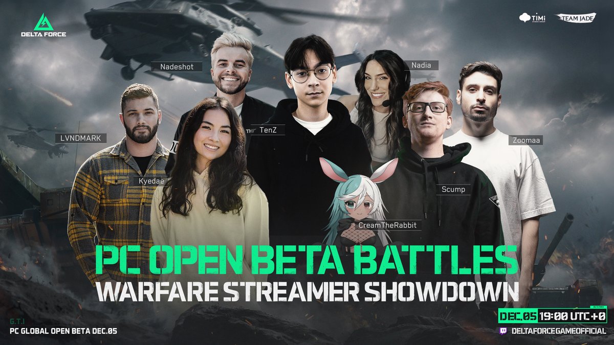 Our elite streamers have been revealed🤩 Join @Nadeshot @TheNadiaAmine @CreamRabbitYT @TenZOfficial @scump @kyedae @LVNDMARK_tv and @ZooMaa as they take on the.. 🤜WARFARE STREAMER SHOWDOWN🤛 Tune in Dec 5 at 19:00 (UTC+0) to catch all the action right here:…