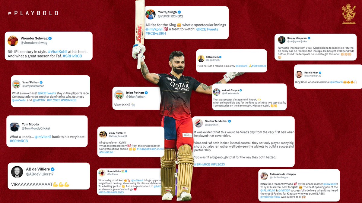 The internet was on fire last night and looks like it will be this way for a little while longer 😮💨 What an innings, what a player! 🤌 #PlayBold #ನಮ್ಮRCB #IPL2023 #SRHvRCB #ViratKohli