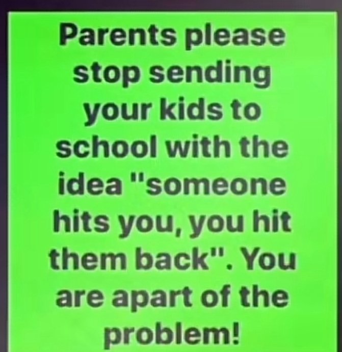 If my kid asks your kid to stop and your kid does it again,my kid has full permission to whoop dat ass