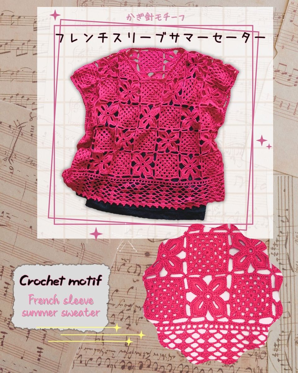 かぎ針モチーフのセーター出来たよ! 「サマーセーター」って最近あまり言わないかな?最近の言い方ってあるの? サマーニット???、、、いえいえ、これはクロッシェだしねぇ。。。 編みい方動画はこちら youtu.be/-e1OLYpZxhQ #手編み #編み物 #かぎ針編み