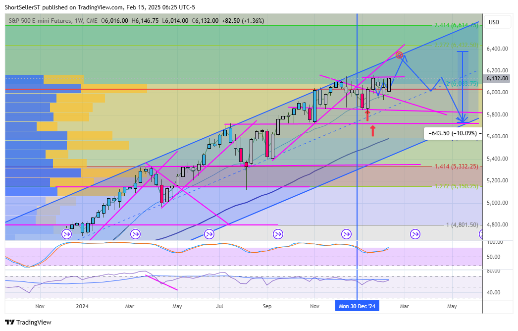 $ES So we reclaimed that DTL but mostly just consolidating the past month. I still think we see 6300ish *but* then the bottom of my channel (10%ish down) by end of March - Moved path to show current thoughts
