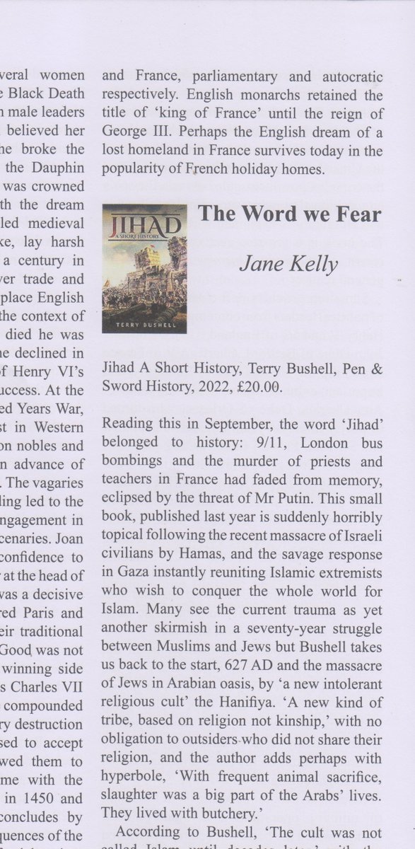The Salisbury Review writes that my book Jihad is ‘suddenly horribly topical following the recent massacre of Israeli civilians by Hamas, and the savage response in Gaza instantly reuniting Islamic extremists who wish to conquer the whole world for Islam’.