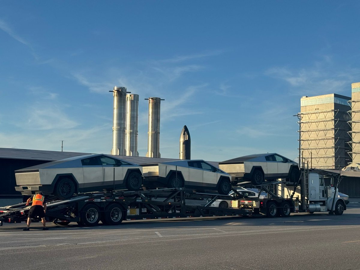 Just wrapped up a visit to Starbase, and the Cybertruck fleet is starting to arrive! Dozens are already on site, lined up to replace the old gas work trucks. SpaceX is aiming to swap out the entire fleet for these angular bad boys. It's a smart move for efficiency as we ramp up…