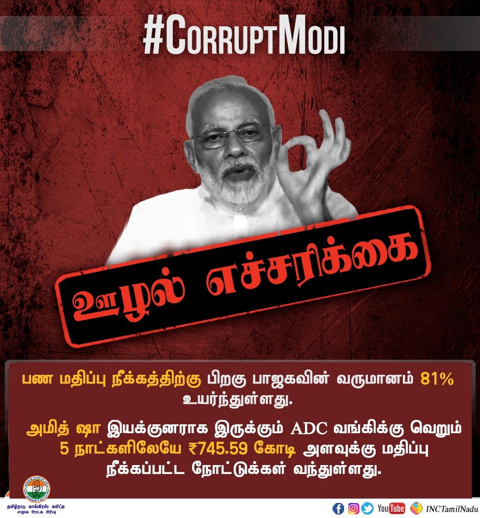 #CorruptModi பண மதிப்பு நீக்கத்திற்கு பிறகு பாஜகவின் வருமானம் 81% உயர்ந்துள்ளது. அமித் ஷா இயக்குனராக இருக்கும் ADC வங்கிக்கு வெறும் 5 நாட்களிலேயே ₹745.59 கோடி ரூபாய் அளவுக்கு மதிப்பு நீக்கப்பட்ட நோட்டுக்கள் வந்துள்ளது.! இது எப்படி என மோடியும் அமித் ஷாவும் விளக்குவார்களா?