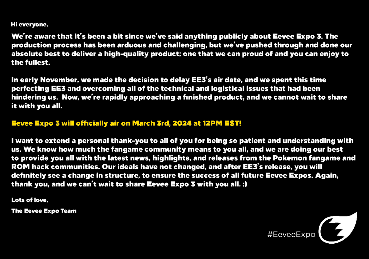 Regarding Eevee Expo 3's progress #EeveeExpo3